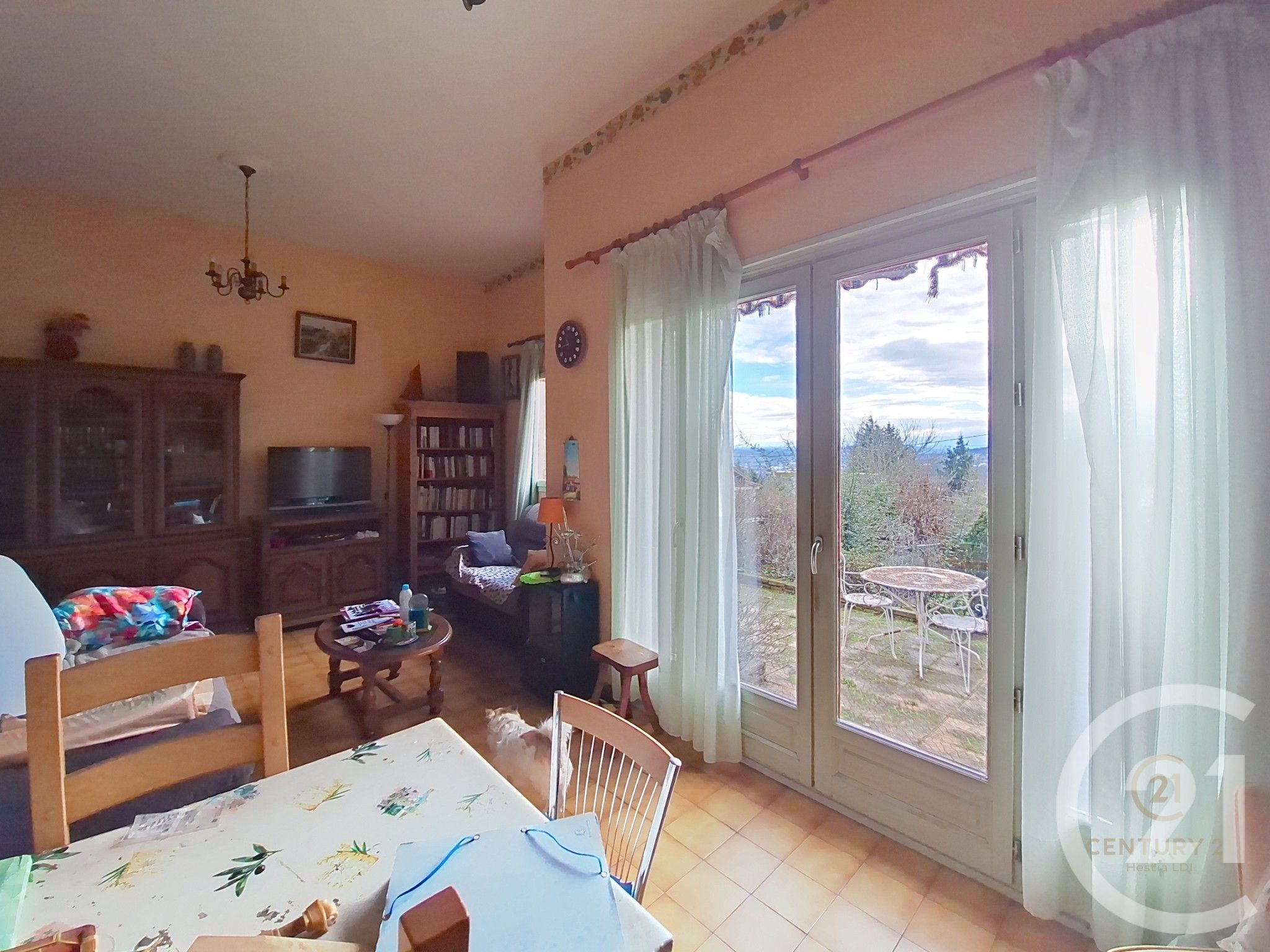 Le terrain clos et arboré vous permettra de profiter agréablement des beaux jours avec une vue dégagée sur les Alpes et le Pilat.